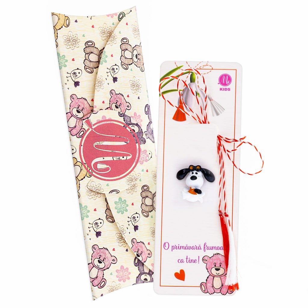 Broșă Pin Mărțișor Copii – Cățeluș cu Căști Roz