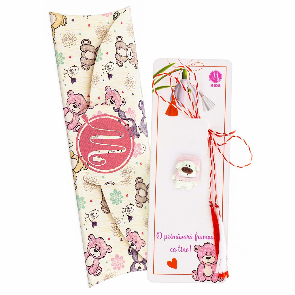 Broșă Pin Mărțișor Copii – Cățeluș cu Guler Roz
