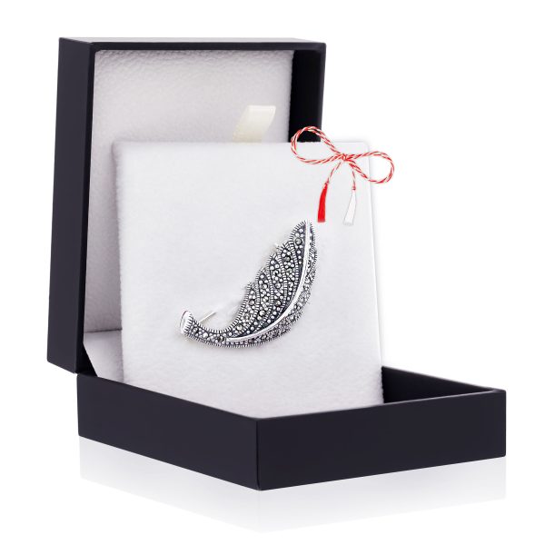 Broșă Argint 925 Frunză Stilizată – Marcasite