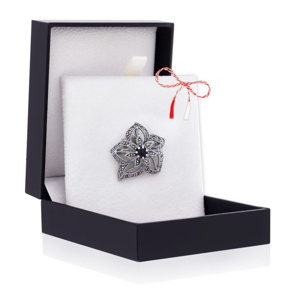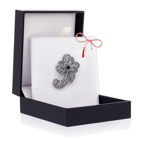 Broșă Argint 925 Buchețel Stilizat – Onyx