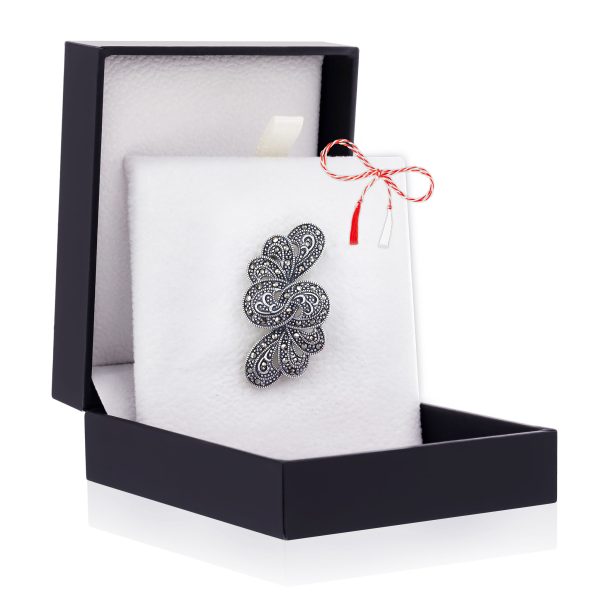 Broșă Argint 925 Model Frunzulițe – Marcasite