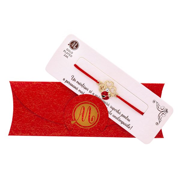 Brățară Roșie Shiny Gold Plated – Trifoi cu Buburuză