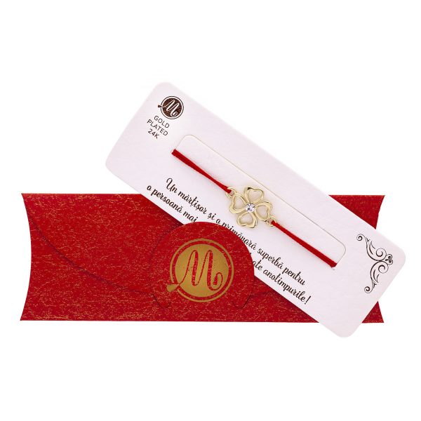 Brățară Roșie Shiny Gold Plated – Trifoi cu Inimioară