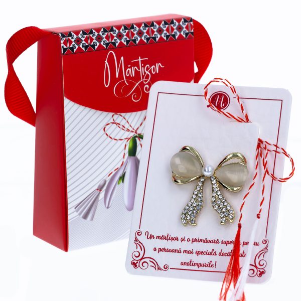 Broșă Mărțișor Gentuță – Fundiță Stilizată cu Pietre
