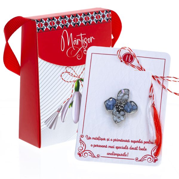 Broșă Mărțișor Gentuță – Floare cu Petale Albastre
