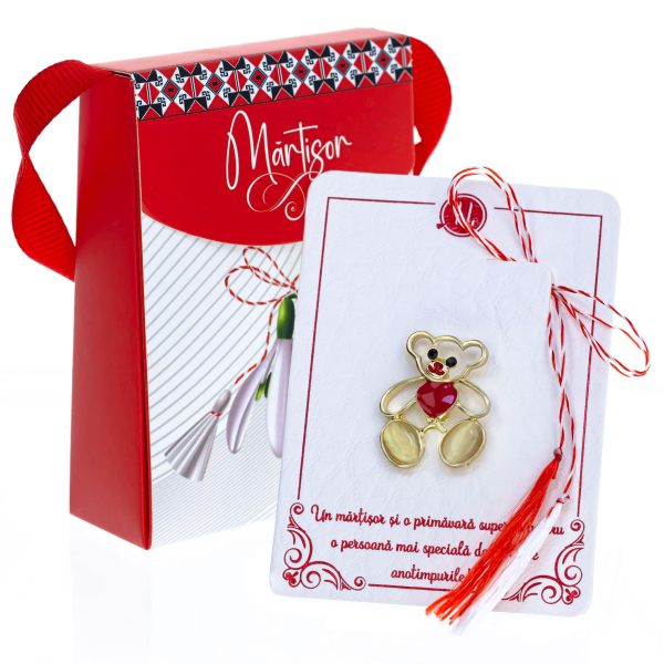 Broșă Mărțișor Gentuță – Ursuleț Auriu cu Inimioară