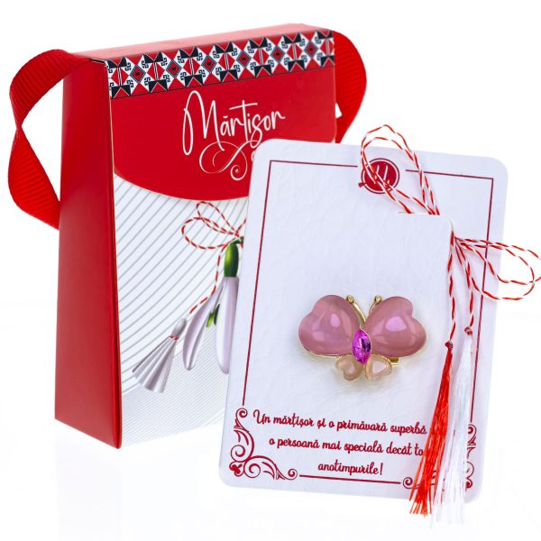 Broșă Mărțișor Gentuță – Fluturaș Roz