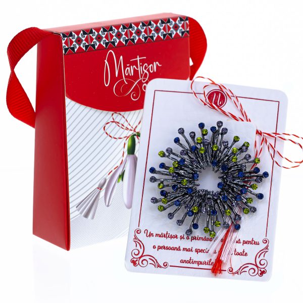 Broșă Mărțișor Gentuță – Coroniță Stilizată cu Pietricele Multicolore