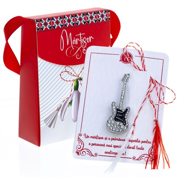 Broșă Mărțișor Gentuță – Chitară Argintie