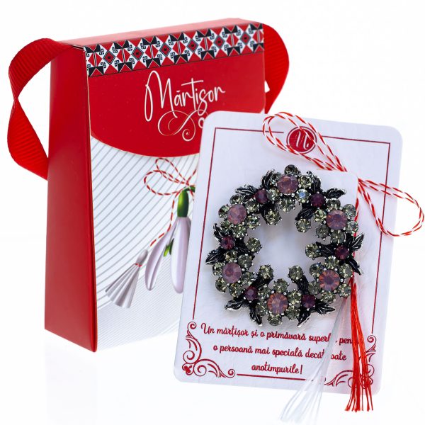 Broșă Mărțișor Gentuță – Coroniță Elegantă cu Pietre