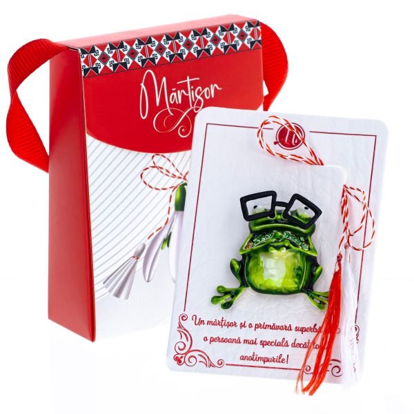 Broșă Mărțișor Gentuță – Broscuță Gânditoare Verde