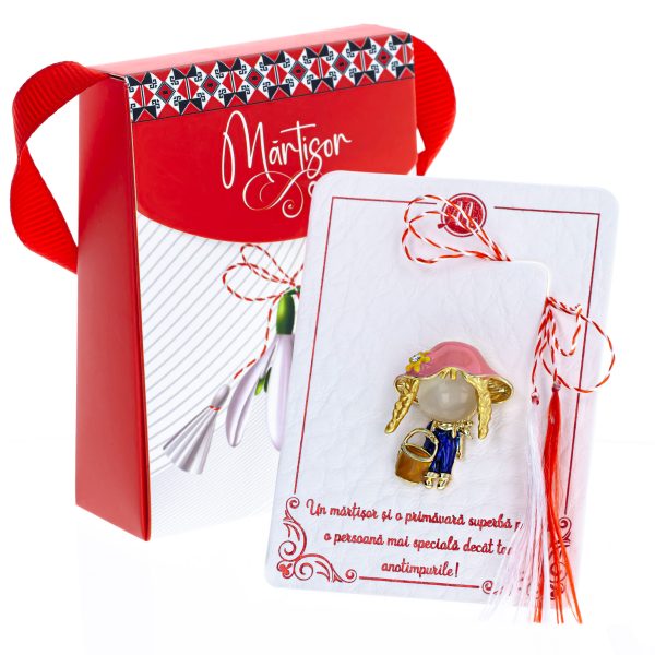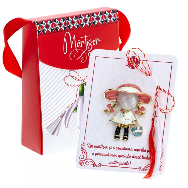 Broșă Mărțișor Gentuță – Fetiță Modernă cu Bluză Albă
