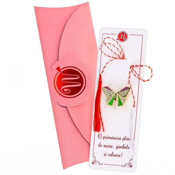 Broșă Mărțișor Gentuță – Fluturaș Stilizat Roz