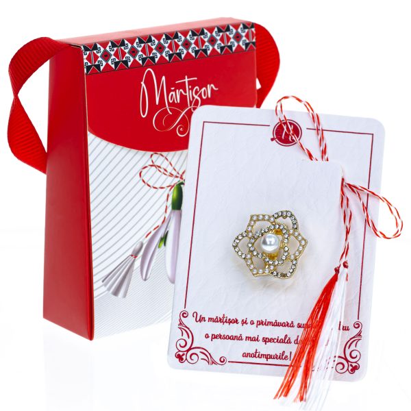 Broșă Mărțișor Gentuță – Buchet cu Floare și Perle