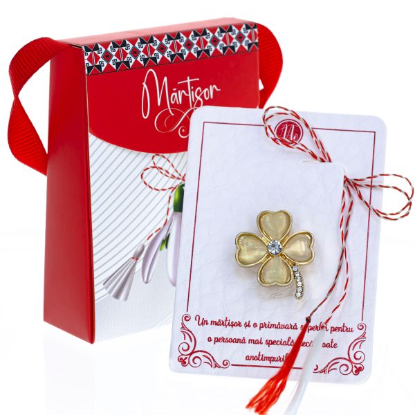 Broșă Mărțișor Gentuță – Trifoi Auriu