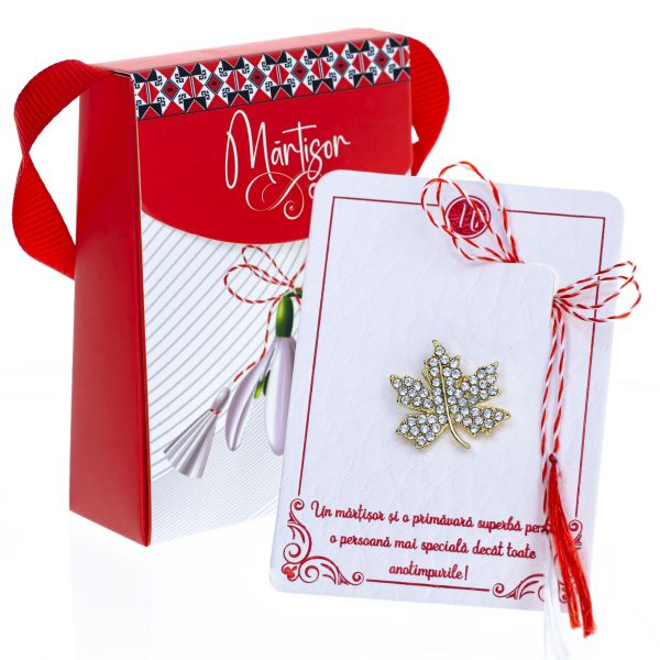 Broșă Mărțișor Gentuță – Frunză Aurie
