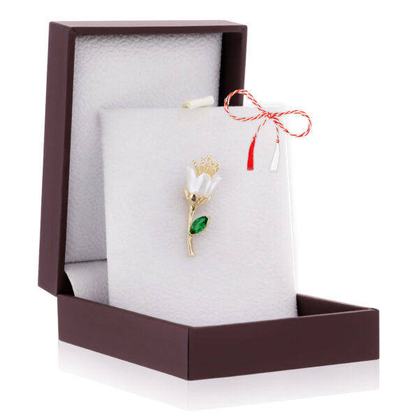 Broșă Premium White Plated Palladium – Buchețel cu Perlă