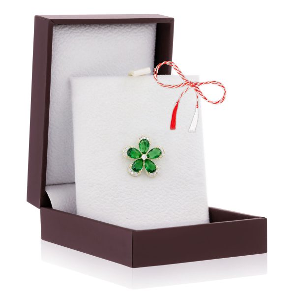 Broșă Premium Gold Plated – Floare cu Pietre Verzi