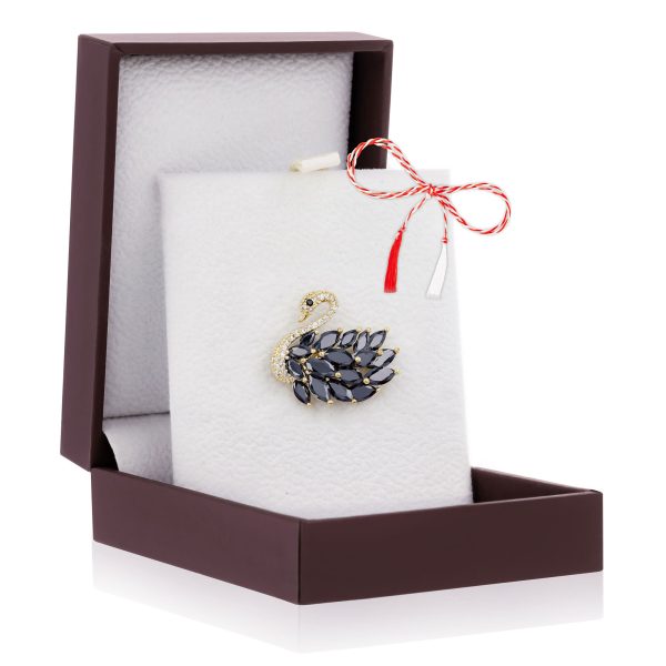 Broșă Premium Gold Plated – Lebădă cu Piatră Roz