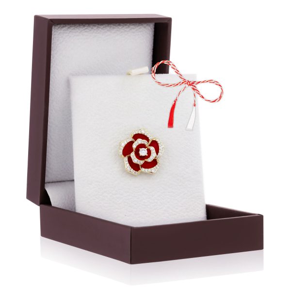 Broșă Pin Premium Gold Plated – Trandafir Roșu