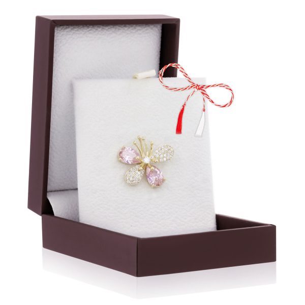 Broșă Pin Premium Gold Plated – Fluturaș Roz