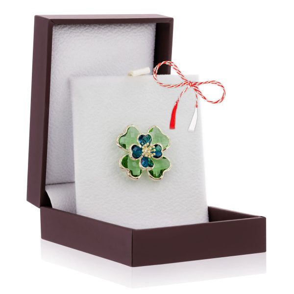 Broșă Pin Premium Gold Plated – Trifoi cu Petale Inimioară Verzi