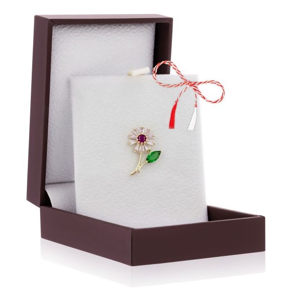 Broșă Pin Premium Gold Plated – Floricică Delicată cu Pietre