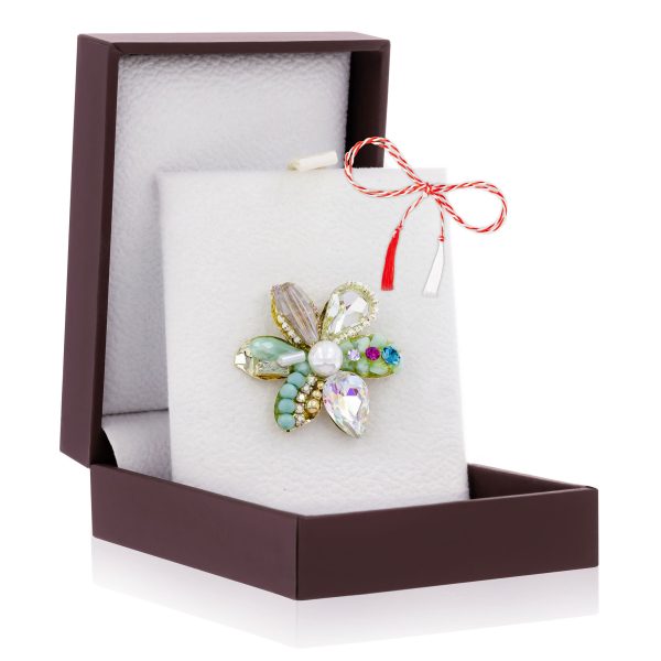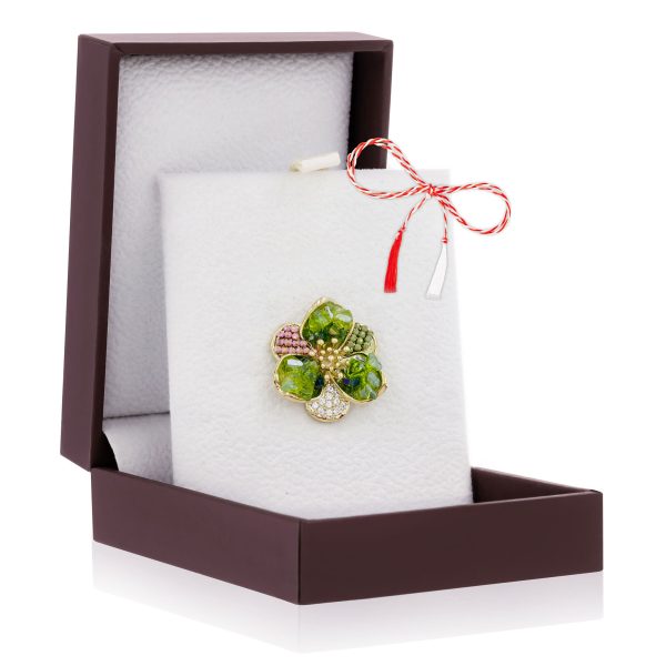Broșă Pin Premium Gold Plated – Floricică Verde Hand-Made