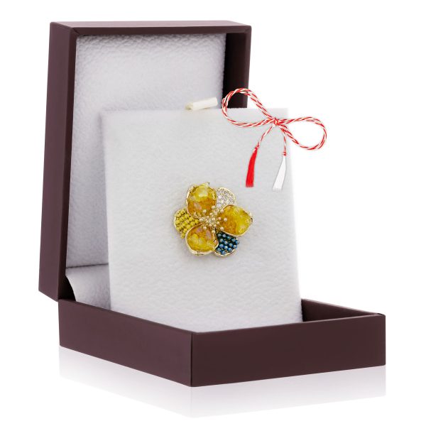 Broșă Premium Gold Plated – Buchețel cu Flori Galbene