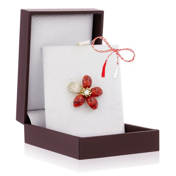 Broșă Pin Premium Gold Plated – Floare Roșie Hand-Made
