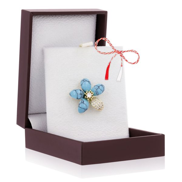 Broșă Pin Premium Gold Plated – Floare Turquoise Hand-Made