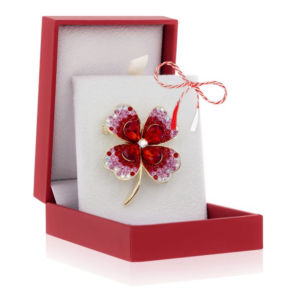 Broșă PREMIUM Gold Plated – Trifoi Regal Roșu