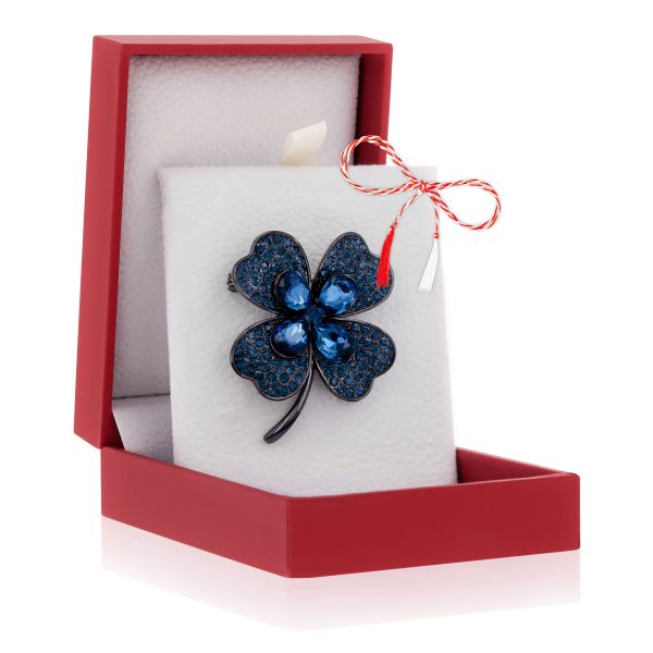 Broșă PREMIUM Gold Plated – Trifoi Regal Albastru