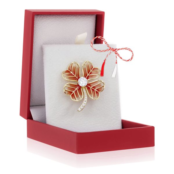 Broșă PREMIUM Gold Plated – Trifoi Roz