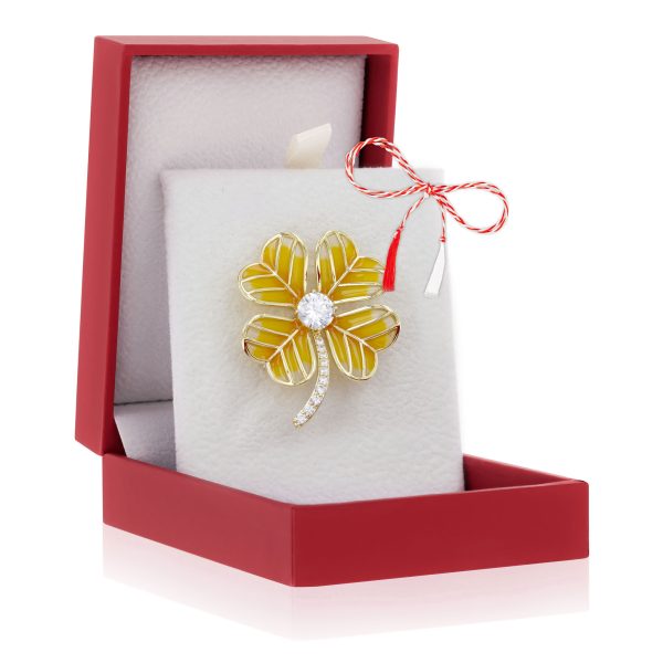Broșă PREMIUM Gold Plated – Trifoi Galben