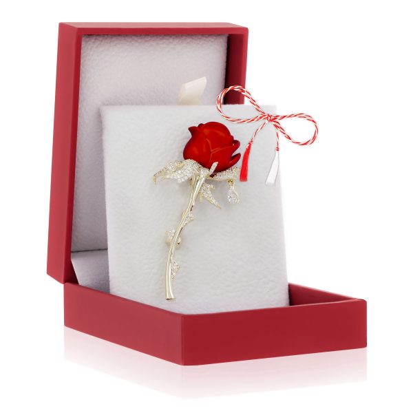 Broșă Premium Gold Plated – Buchețel cu Pietre Roșii