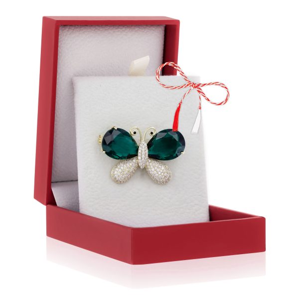 Broșă PREMIUM Gold Plated – Fluture cu Aripi Verzi și Sidefate