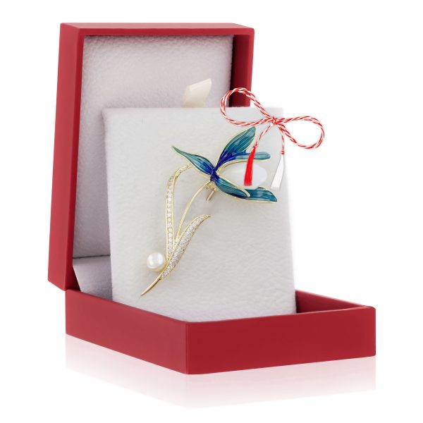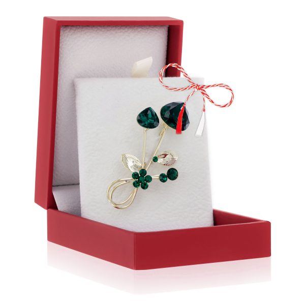 Broșă Premium Gold Plated – Buchet cu Floare Verde