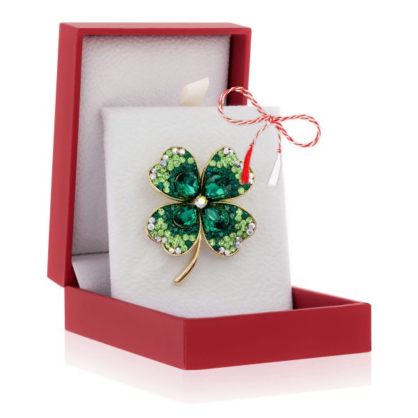 Broșă PREMIUM Gold Plated – Trifoi Regal Verde