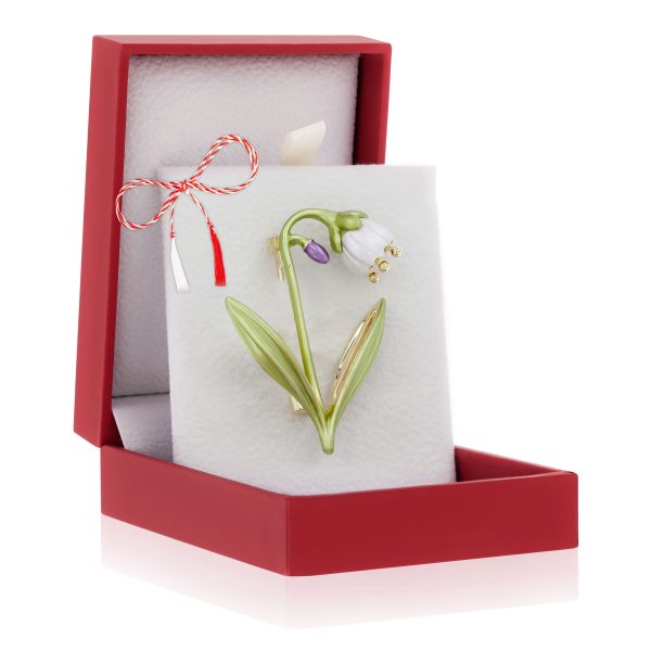 Broșă PREMIUM Gold Plated – Model Coroniță cu Flori Albe