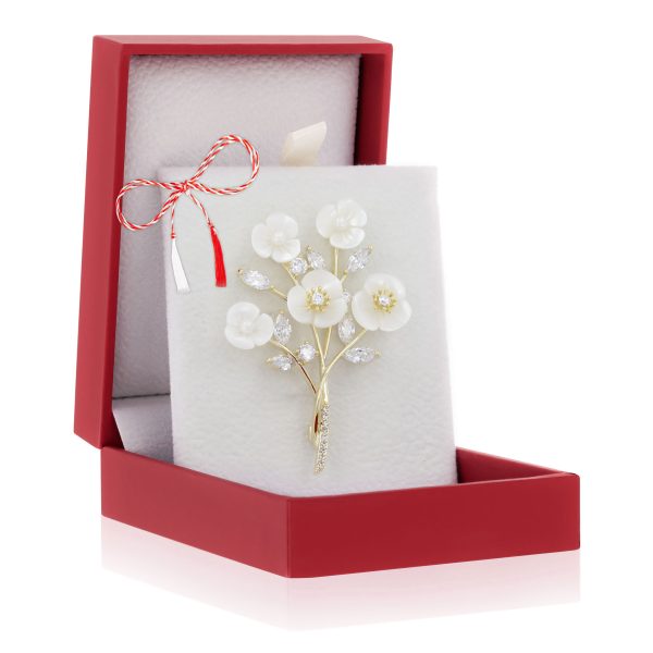Broșă PREMIUM Gold Plated – Model Buchet cu Flori Albe