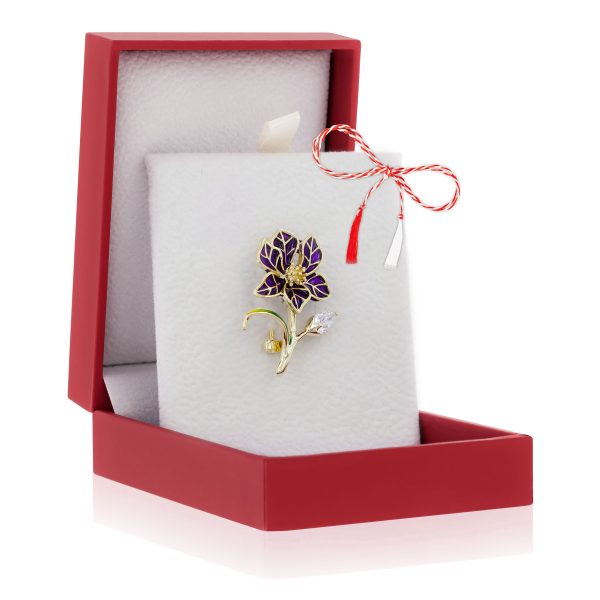 Broșă PREMIUM Gold Plated – Model Floricică cu Petale Mov