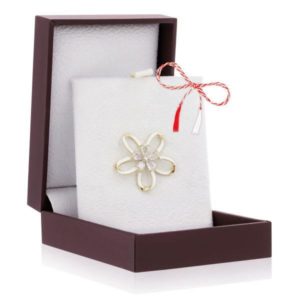 Broșă Pin Premium Gold Plated – Floare Albă Hand-Made