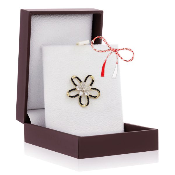 Broșă Pin Premium Gold Plated – Floare Neagră Hand-Made