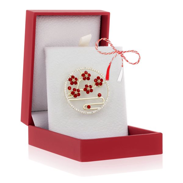 Broșă PREMIUM Gold Plated – Coroniță cu Floricele Roșii
