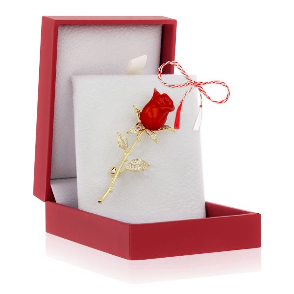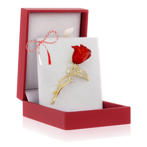 Broșă PREMIUM Gold Plated – Model Trandafir Roșu
