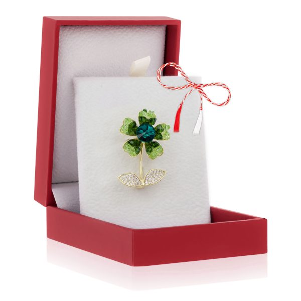 Broșă PREMIUM Gold Plated – Trifoi cu Pietricele Strălucitoare