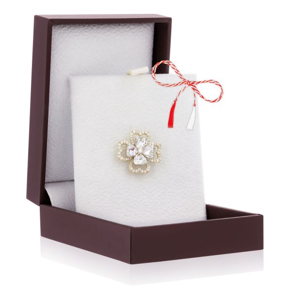Broșă Pin Premium Gold Plated – Trifoi Cu Pietricele Albe