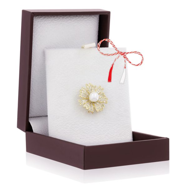 Broșă Pin Premium Gold Plated – Floare cu Perlă