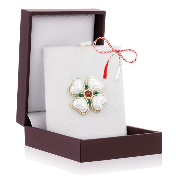 Broșă Pin Premium Gold Plated – Floare cu Sidef și Cristale
